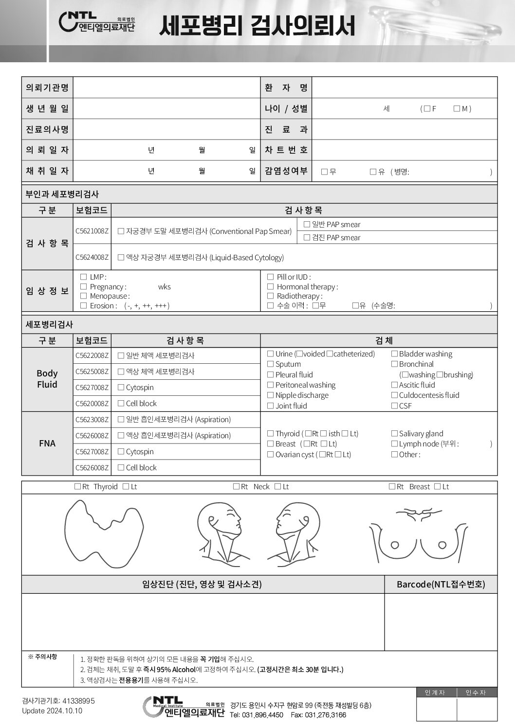 | 검체채취량(ml) | 15ml 이하/50ml |
