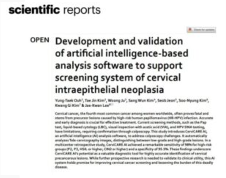 활용한 자궁경부암 조기진단 연구 논문이 최근 국제학술지 사이언티픽리포트에 실렸다고 31일 밝혔다.